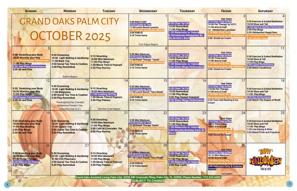 Here at Grand Oaks of Palm City, we offer a wide variety of daily activities, including painting classes, live music, kite flying, birthday celebrations and more!